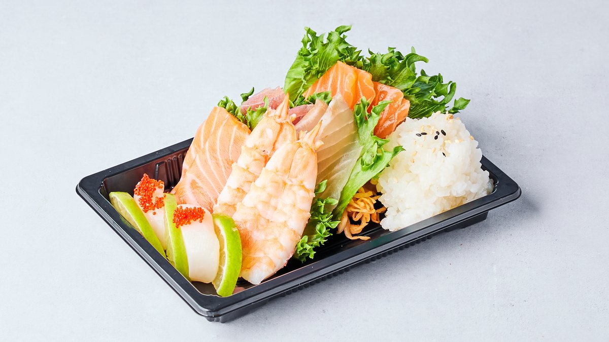 Nigiri: 4 Laks, 2 Scampi, 2 Tunfisk, 2 Kamskjell Maki: 12 Scampi Tempura Futo Maki Sashimi: 4 Laks
