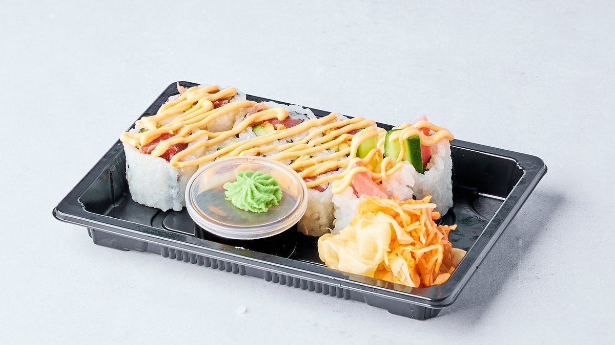 8 biter. Maki med tunfisk, avocado, agurk, chilimajones