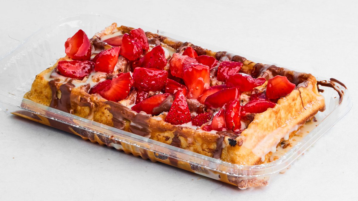 Toppet med jordbær, hvit sjokolade- saus og Nutella- saus