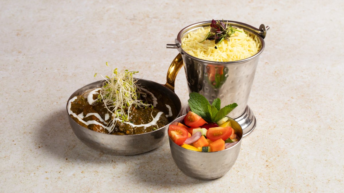 Kremet rett av paneer med spinat, ingefær, hvitløk, garam masala og annet krydder.