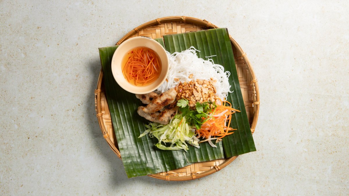 BÚN NEM NƯỚNG - Risnudler med grillede Nem svinnekjøttkaker