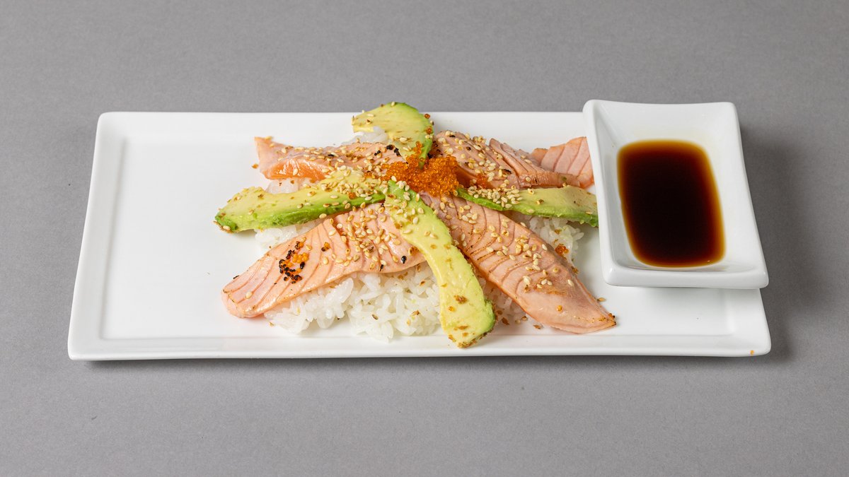 Flambert laks, ris, avokado, mild soyasaus.
