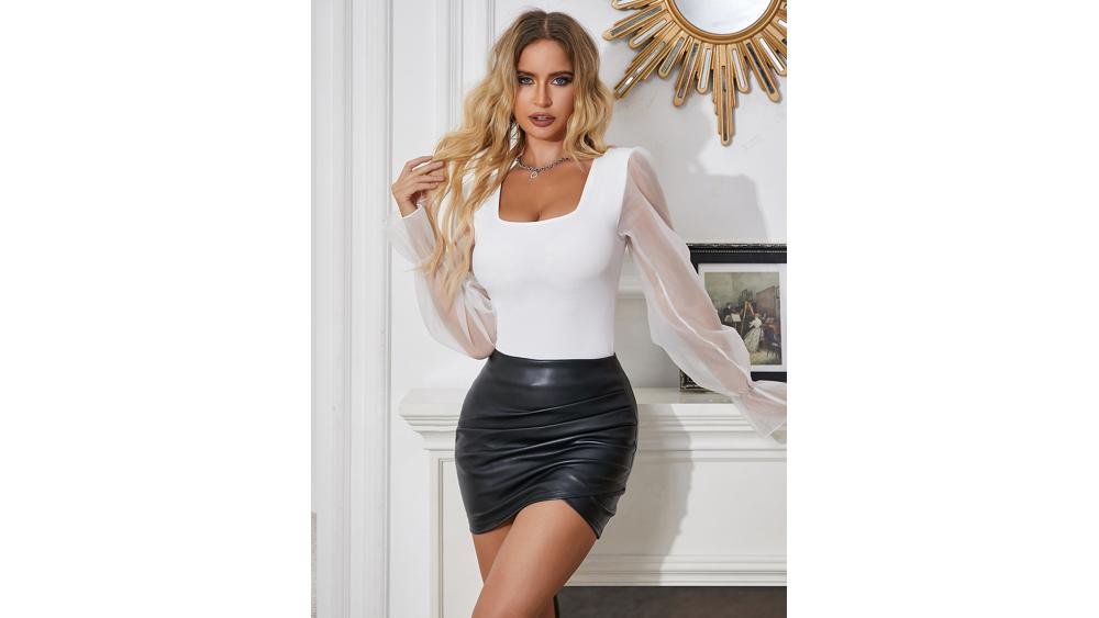 Hvit Sexy Bodysuit med Firkantet Hals og Chiffon Puff-ermer