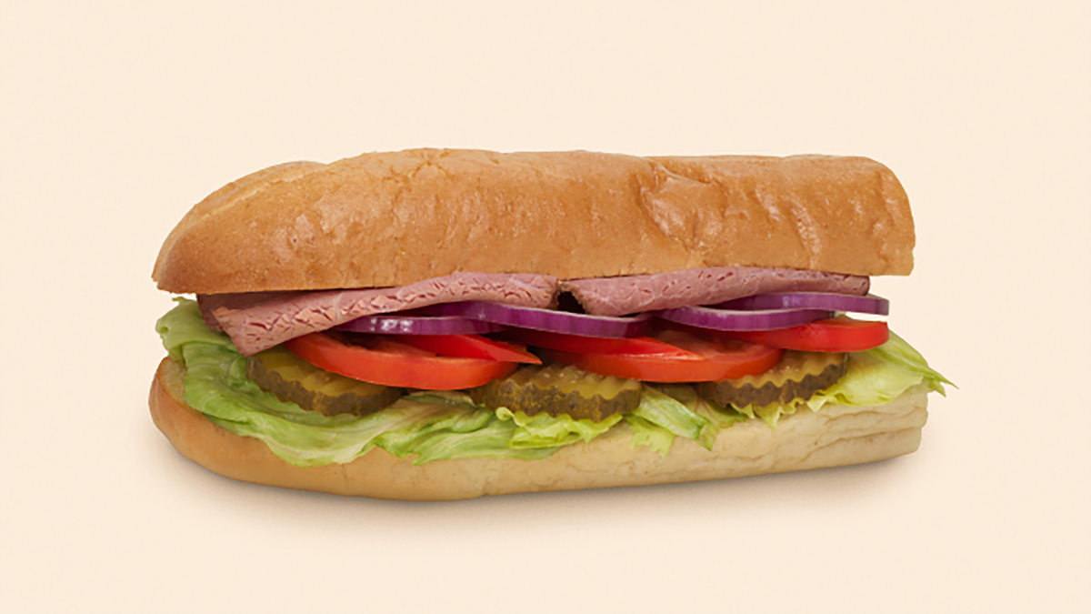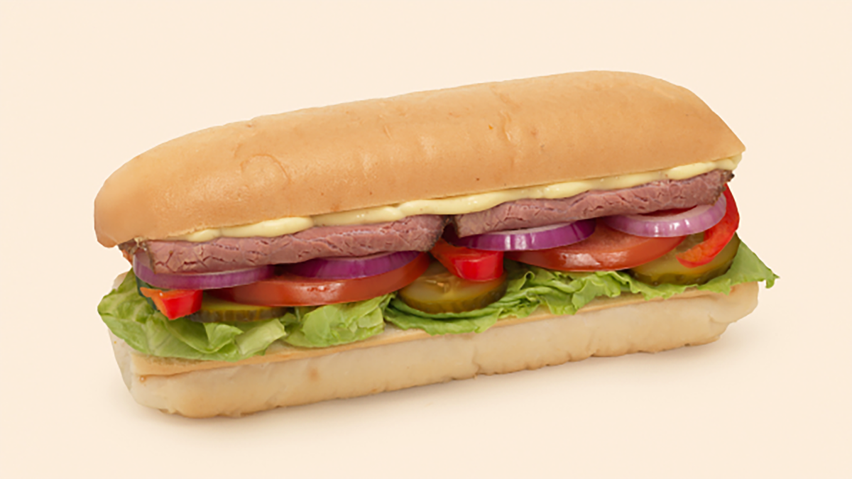 Halv sub fylt med roastbeef, et friskt utvalg av grønnsaker og remulade. Anbefales med ekstra roastbeef, ost og tortillachips