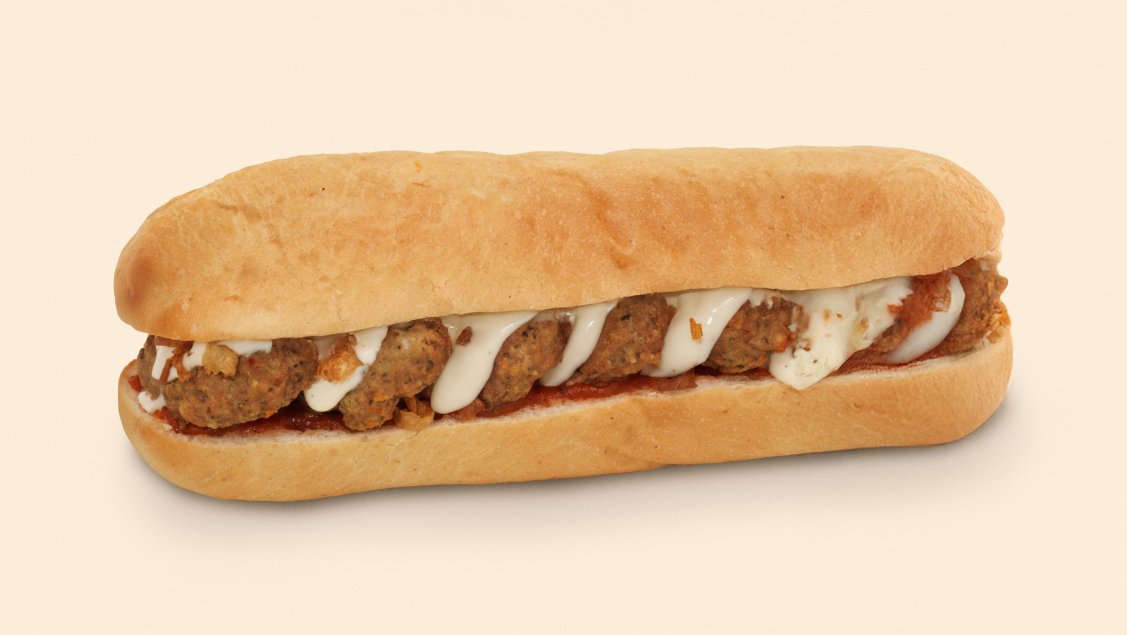 Halv sub med saftige kjøttboller badet i krydret tomatsaus, toppet med smeltet mozzarella, sprøstekt løk og rømmedressing. Anbefales med ekstra kjøttboller og mozzarella,
