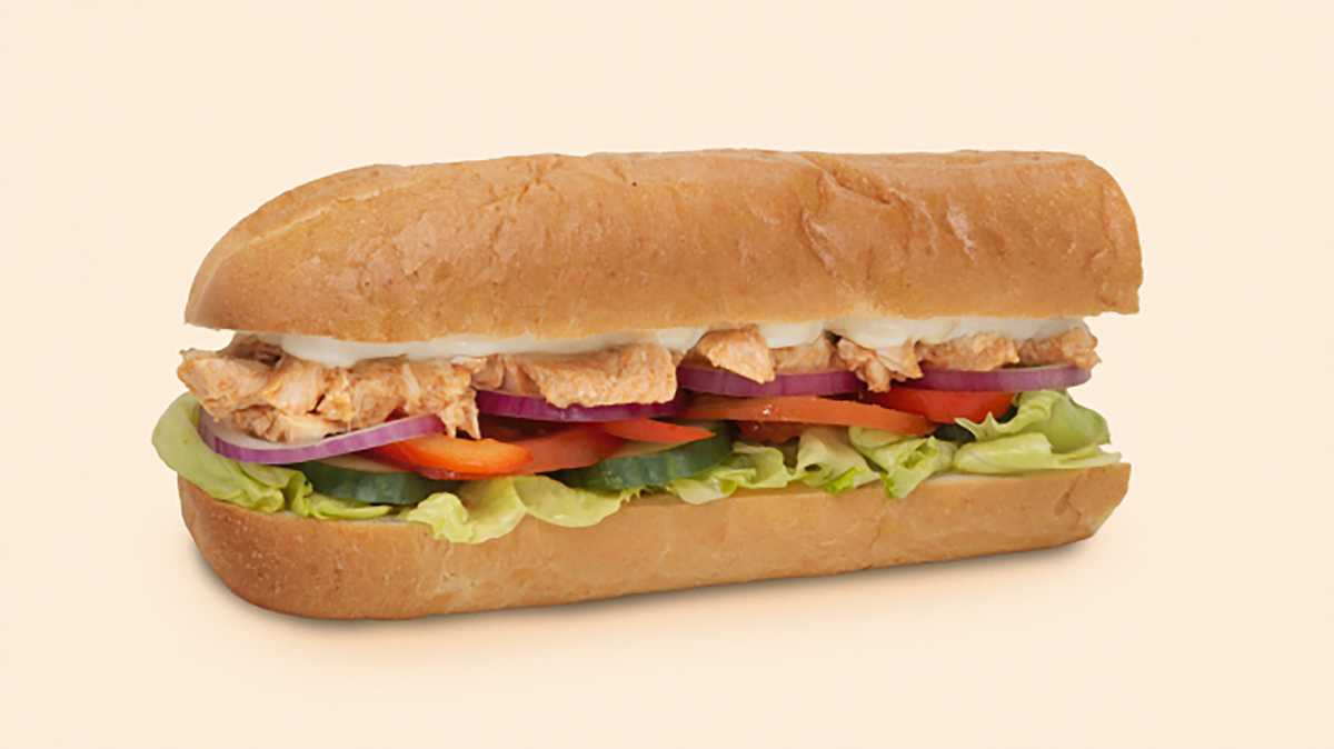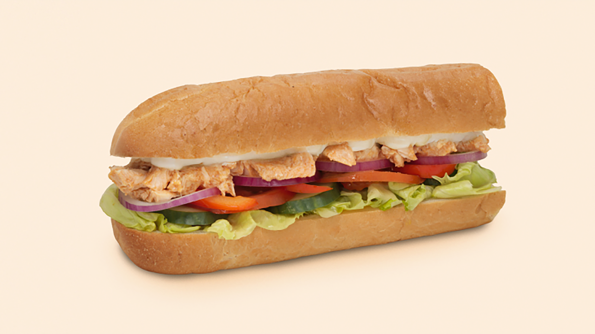Halv sub med spicy tunfisksalat og og et friskt utvalg av grønnsaker. Anbefales med ekstra spicy tunfisksalat, ost og tortillachips.