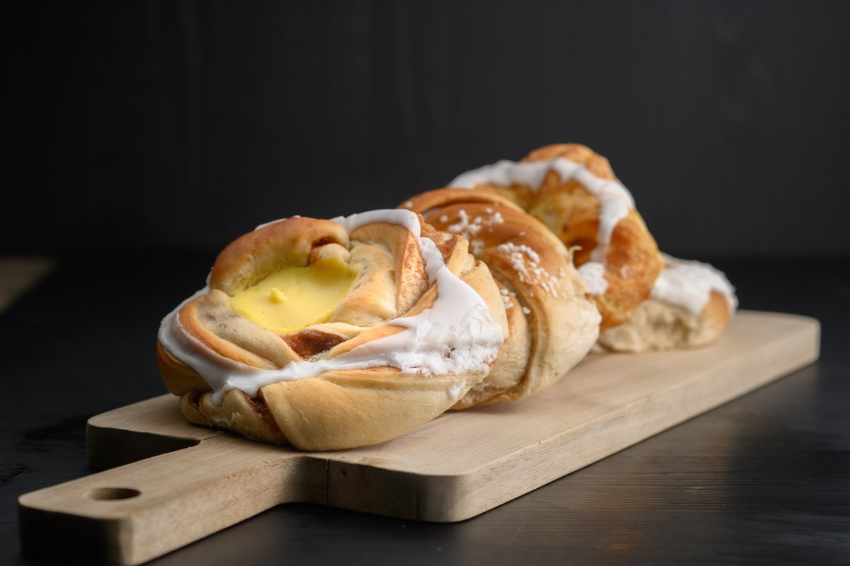 Wienerbrød med gul krem.