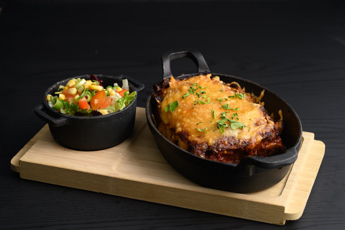 Dolly's tomatsaus og osteblanding, marinert biffkjøtt, løk, ananas og kreolsk krydder.