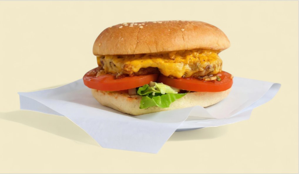 Dobbel ost, salat, løk, tomat, bbq-saus og dobbel crush topping.