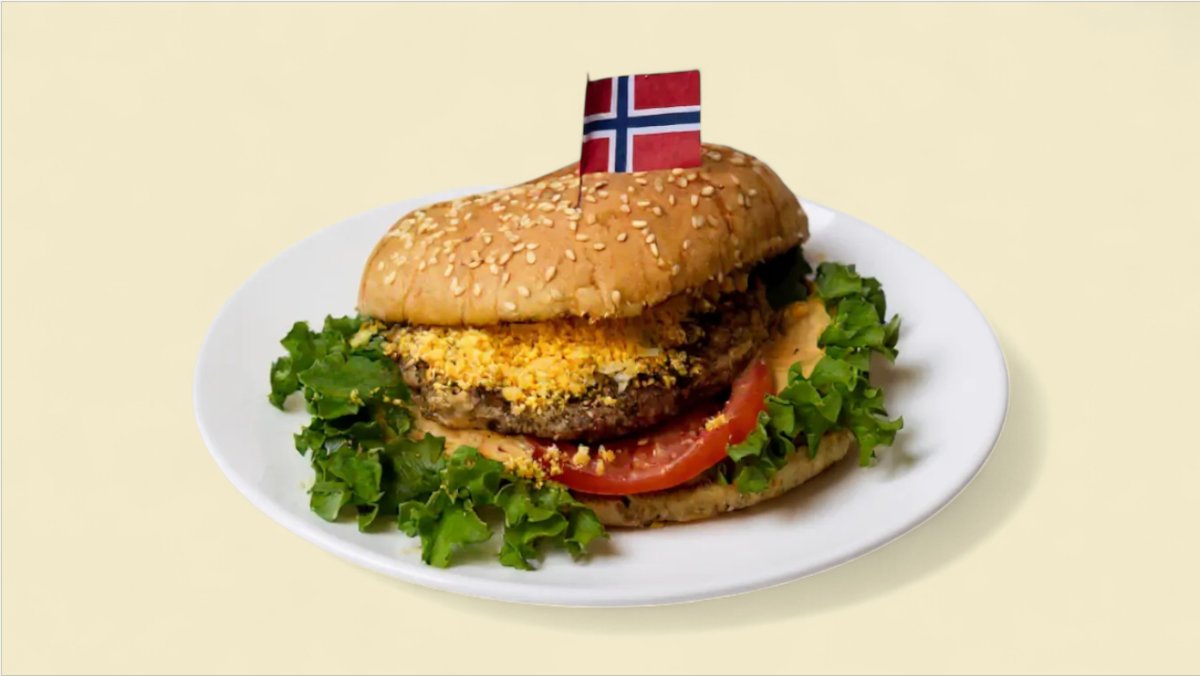 190g Norgesburger kjempe med dobbel ost, salat, løk, tomat, bbq-saus og dobbel crush topping. Serveres med pommes frites, valgfri dip og valgfri brus.