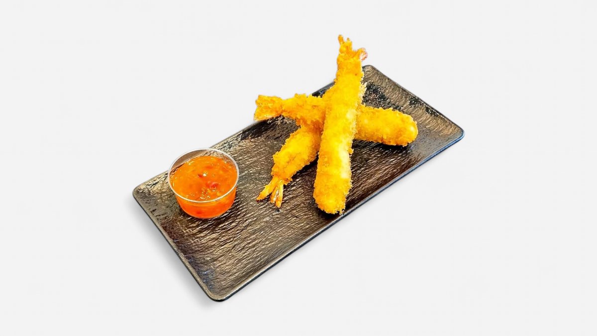 3 stk sprøstekt tempura scampi med sweet chili