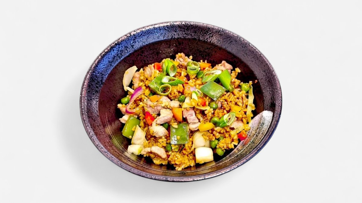 stekt ris med egg, grønnsaker og svinekjøtt