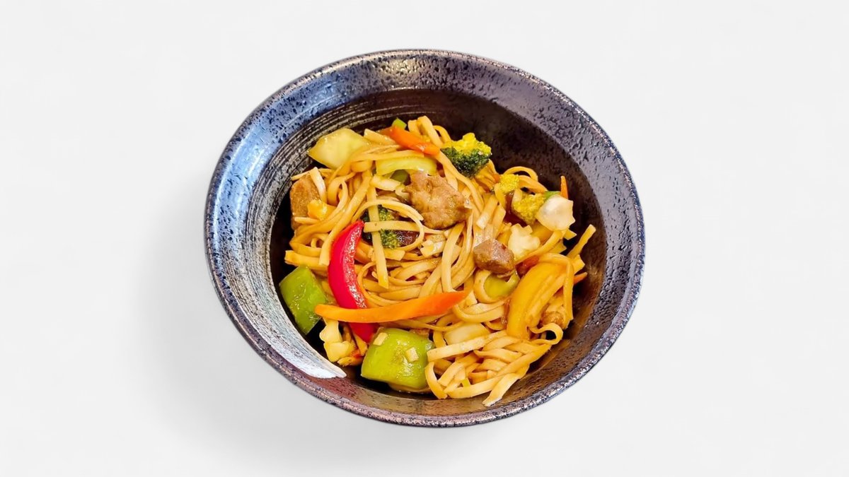 Nudler med stekte grønnsaker og svinekjøtt