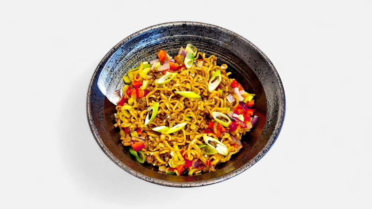 kjøttdeig av storfe, grønnsaker og nudler stekt sammen med vår gochujang saus