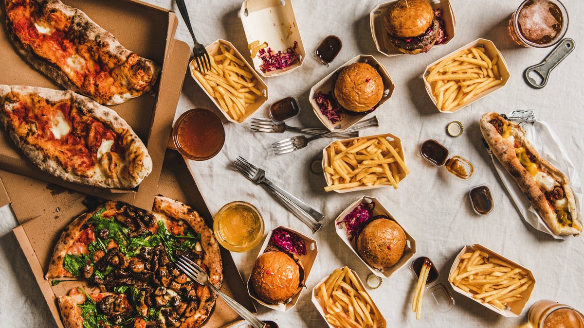 Pizza med tomatsaus, ost, skinke, kylling, bacon, pepperoni, gyroskjøtt, med pommes frites, løkringer, chillicheese, kyllingnuggets og mozzerellasticks.