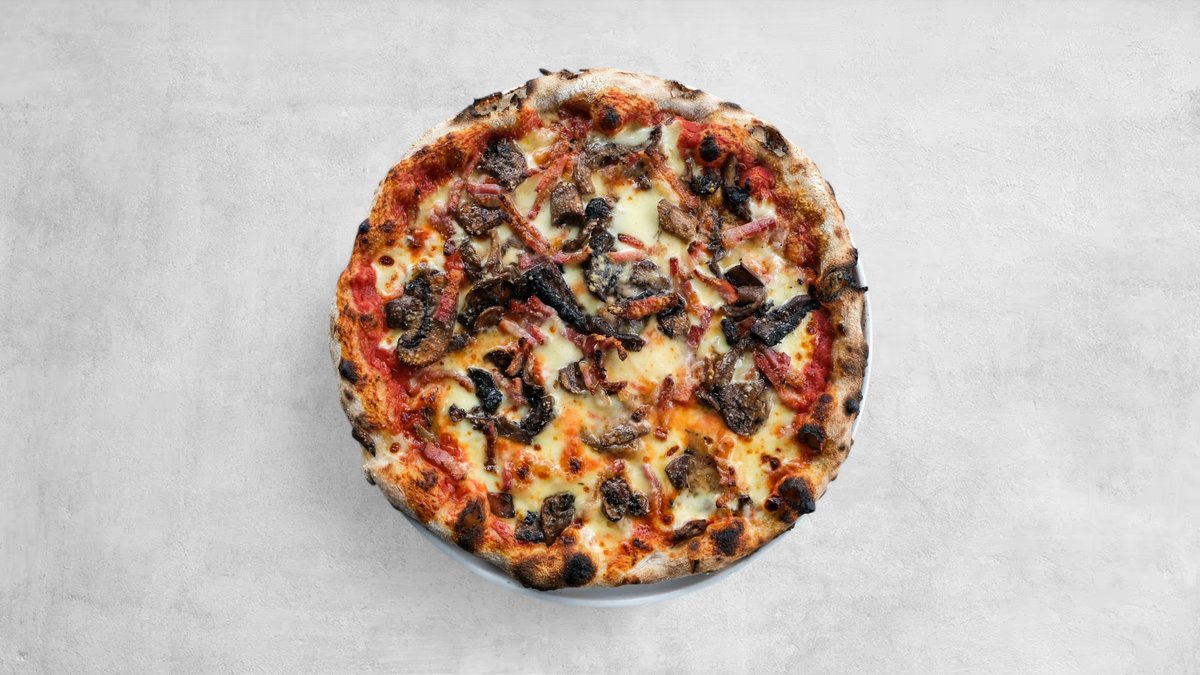 San Marzano D.O.P. Tomato Sauce, Mozzarella Fior di Latte, Pancetta, Mushroom, Truffle Oil & Parmigiano Reggiano.