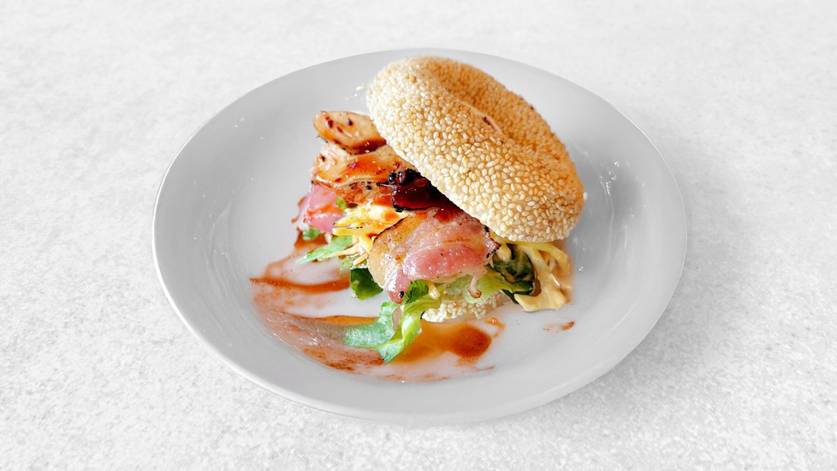 Bagel Buddys bestselger, sprøtt bacon, saftig kylling med skinn, dynket med vår egen hotsaus.