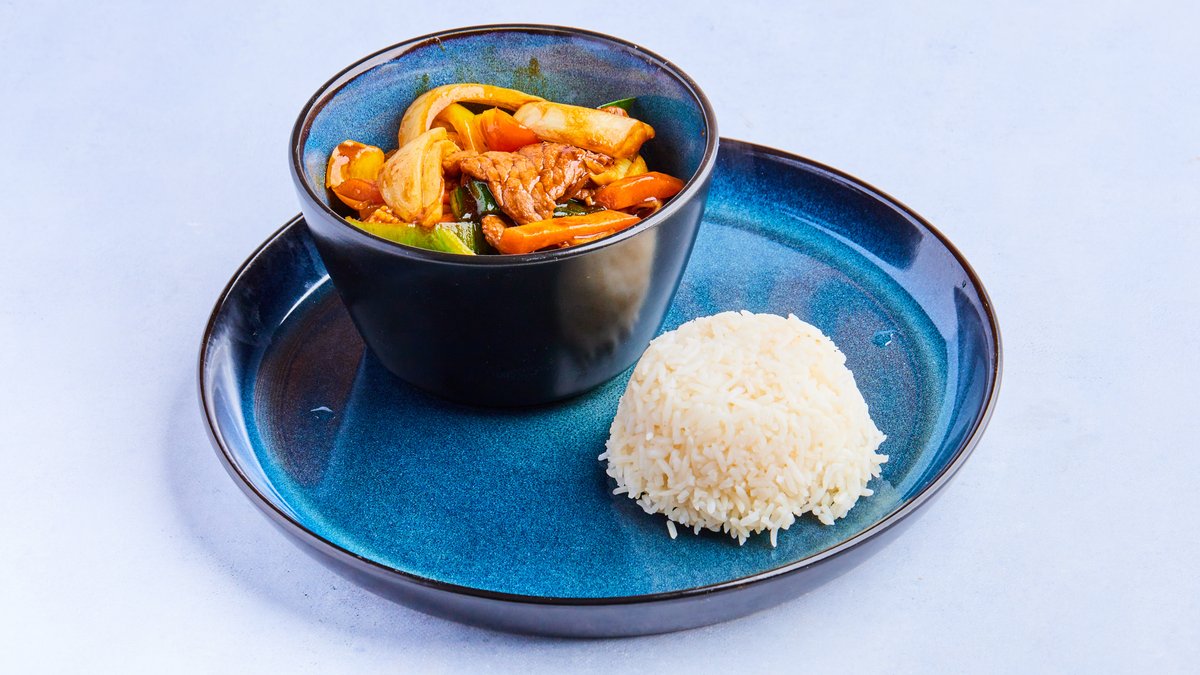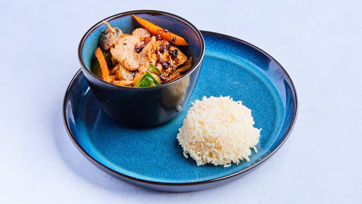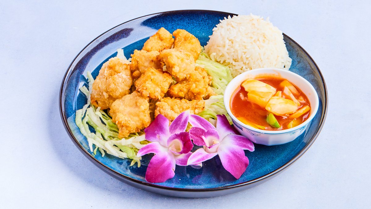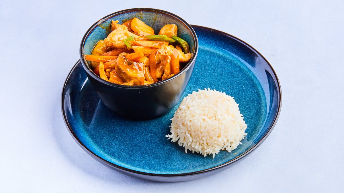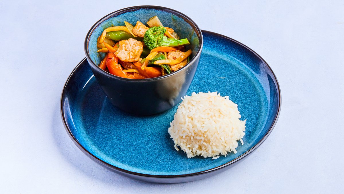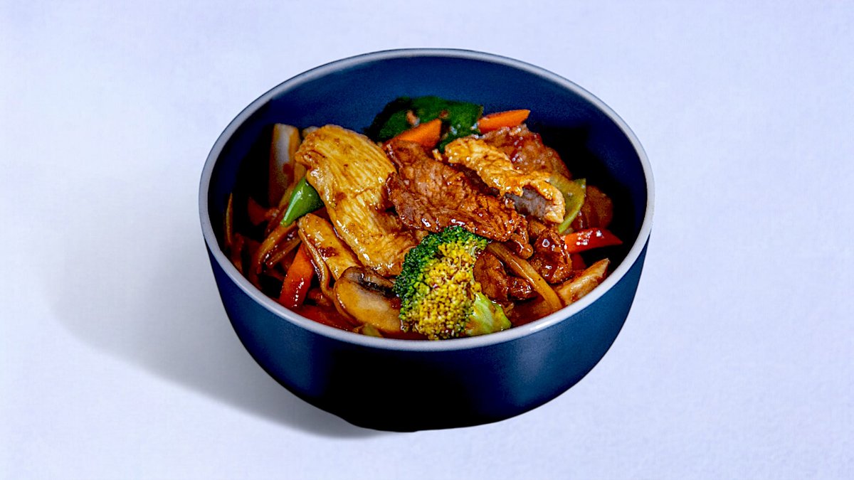 Velg protein. Serveres med grønnsaker og chilisaus.