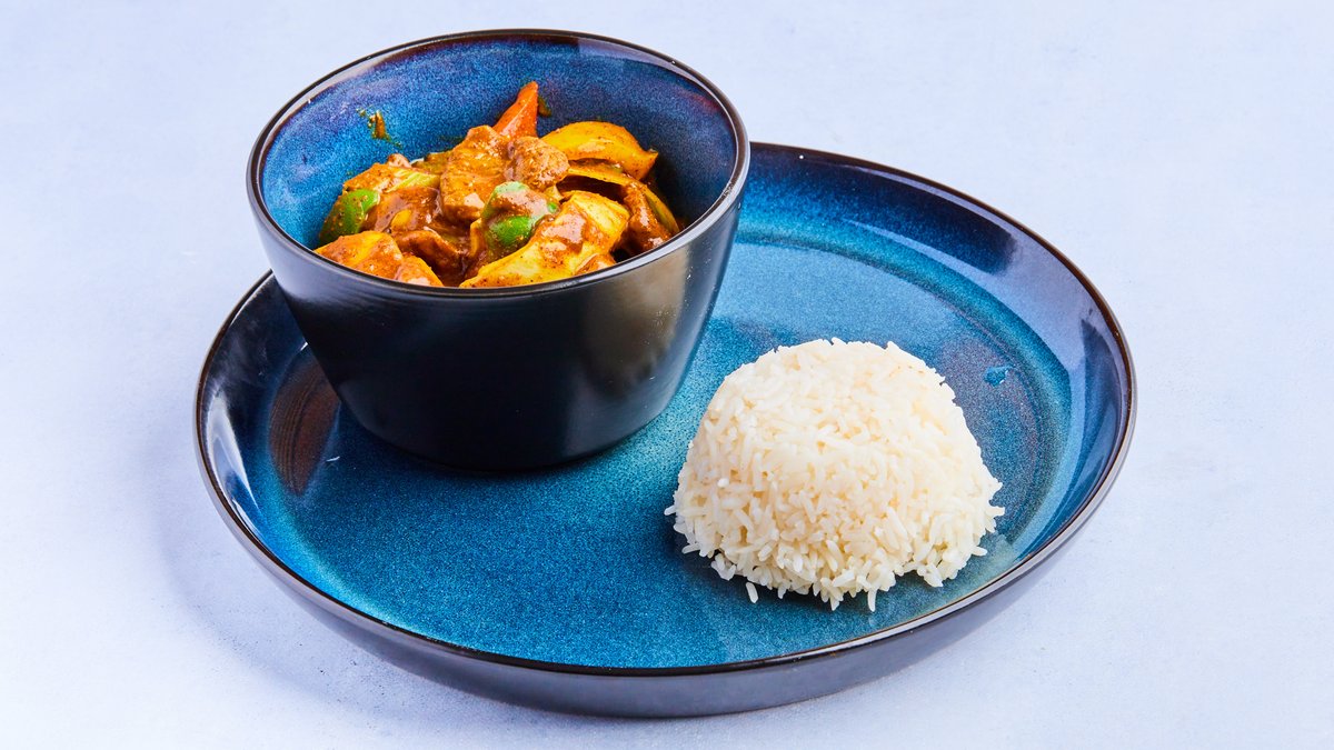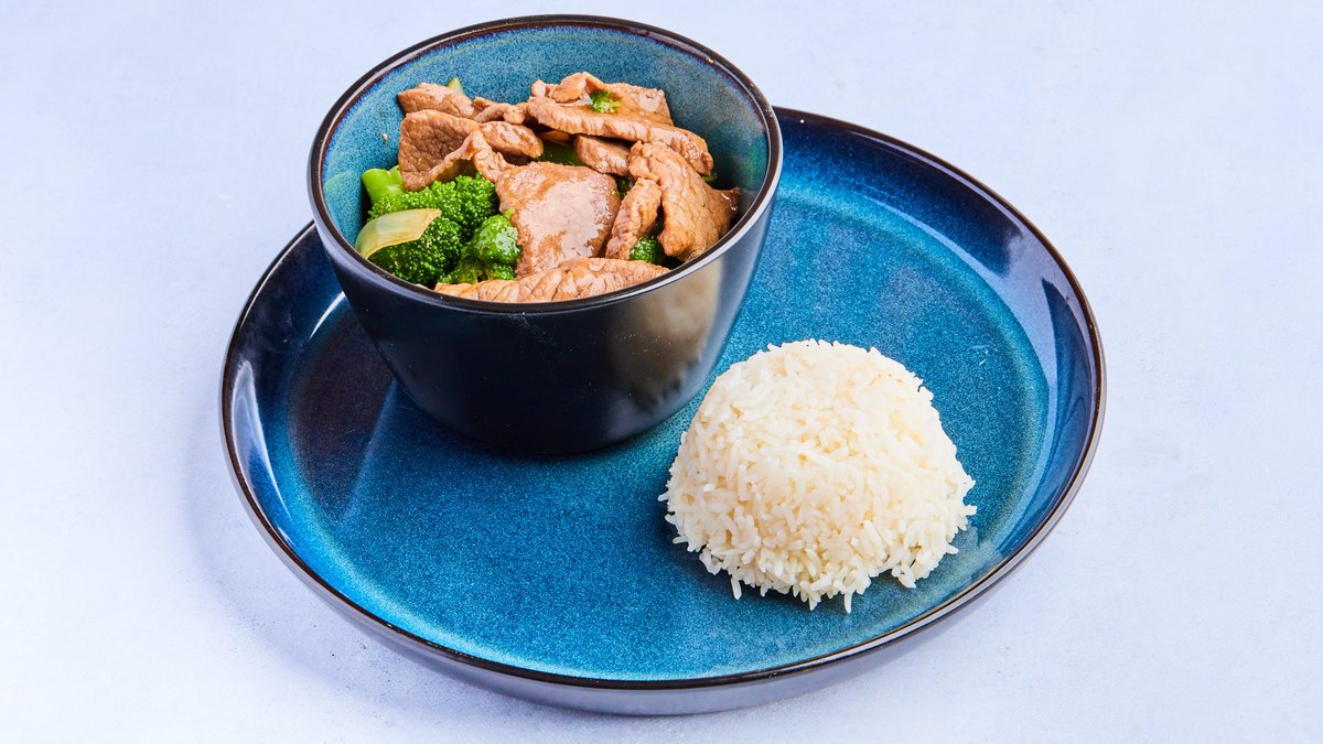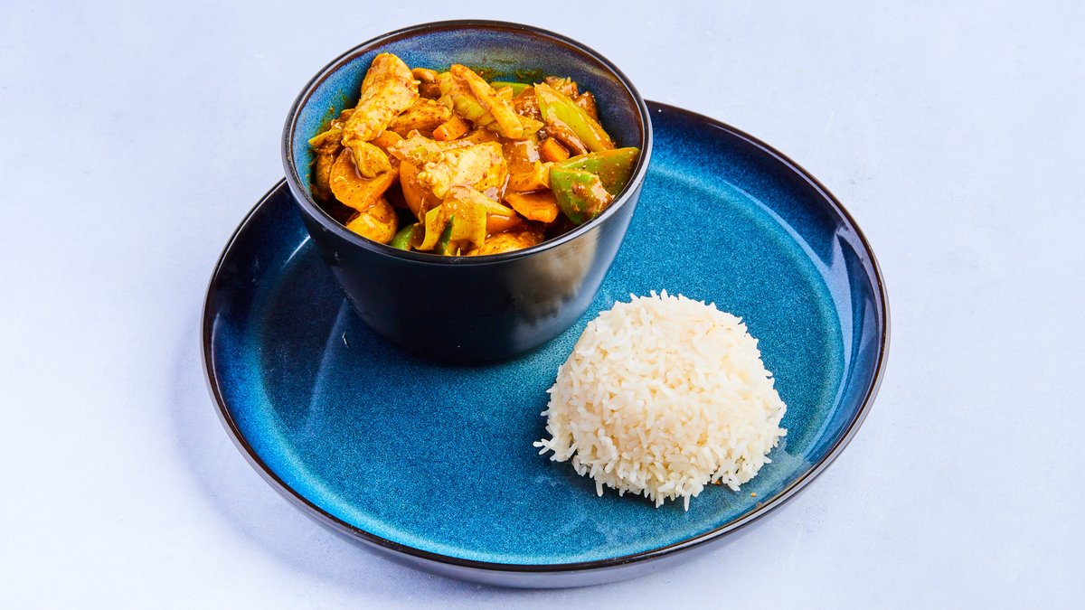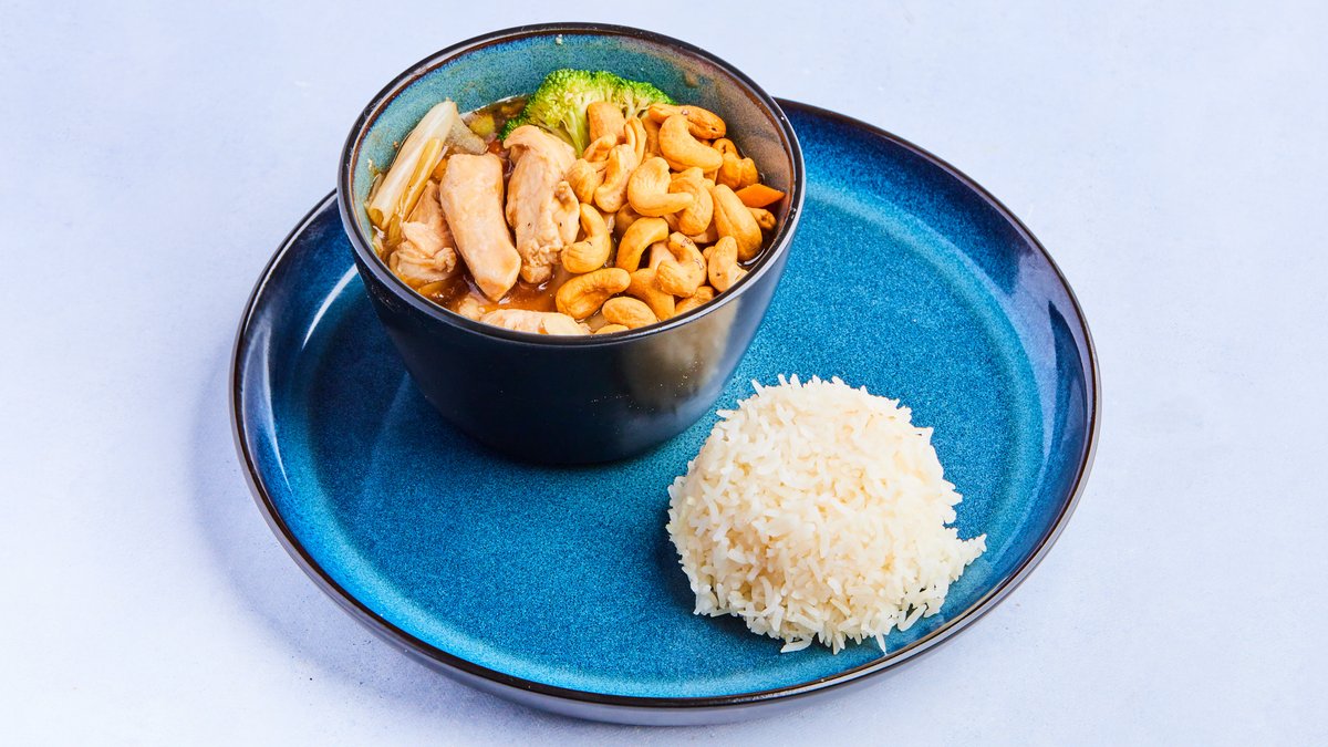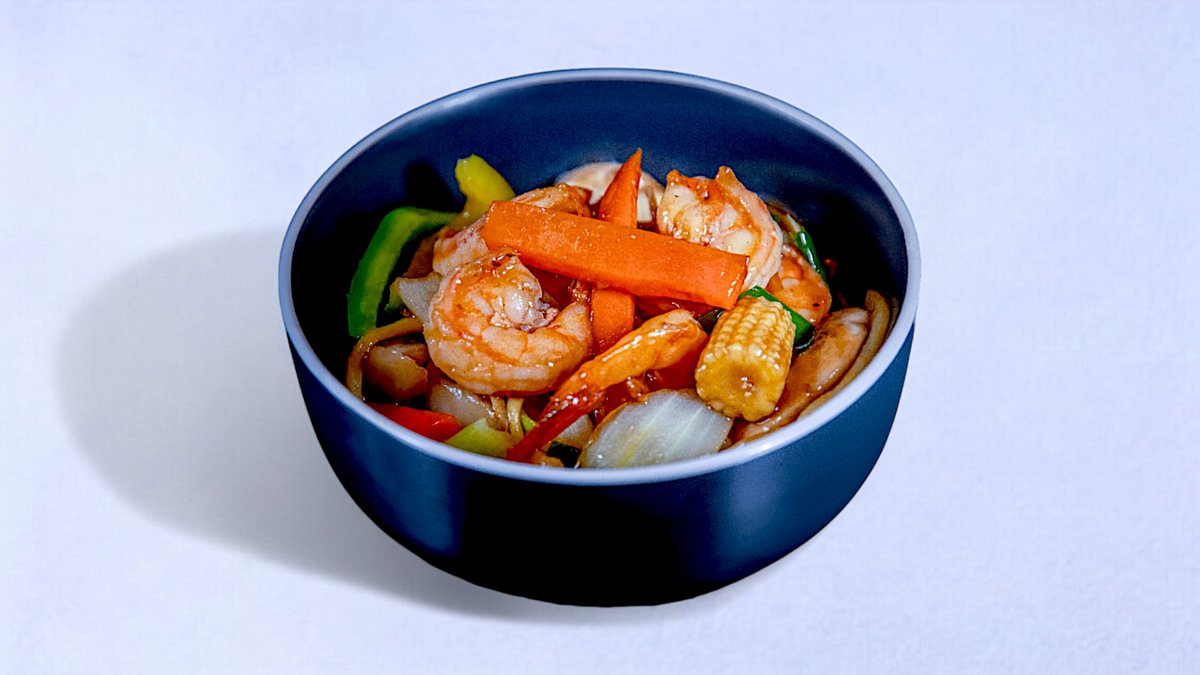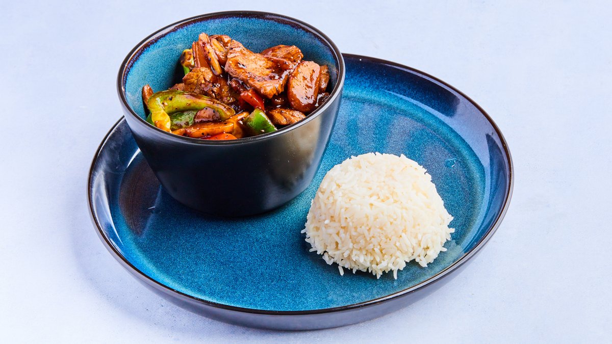 Velg protein. Serveres med grønnsaker og chilisaus.