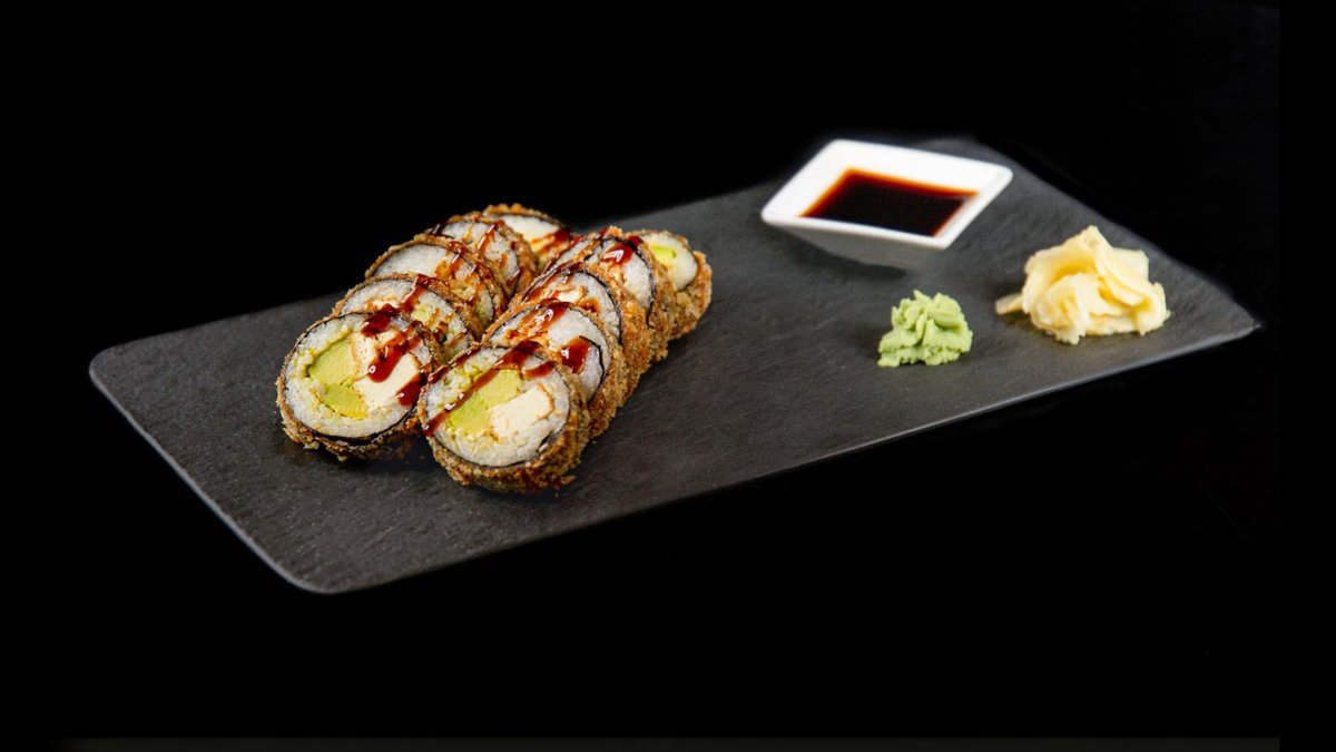Fritert tofu, avokado, philadeplphia ost og teriyakisaus.