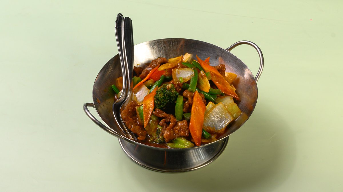 Velg mellom biff eller kylling Inneholder: Hvitløk, ingefær, risvin og teriakisaus.