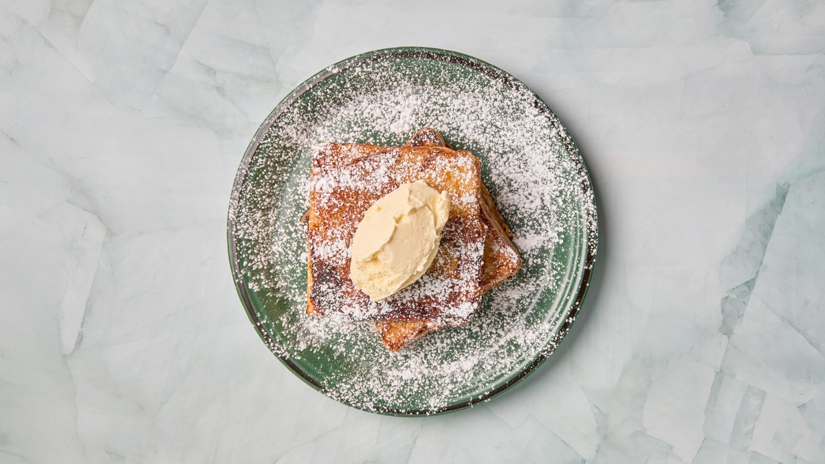 Brødbiter, fersk skinke, mozzarella, honning, valnøtter og iskrem.