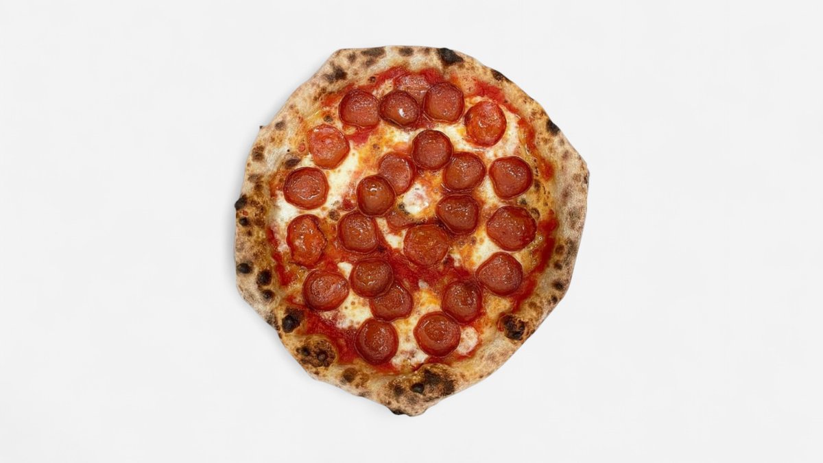 Tomatsaus, bøffelmozzarella, ‘nduja, salsiccia, habanero chilli, basilikum og olivenolje