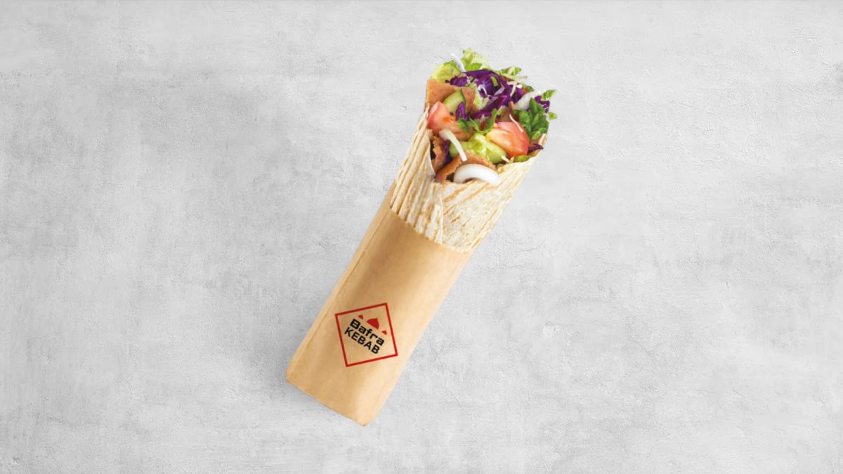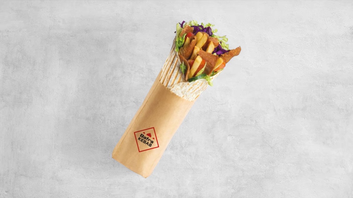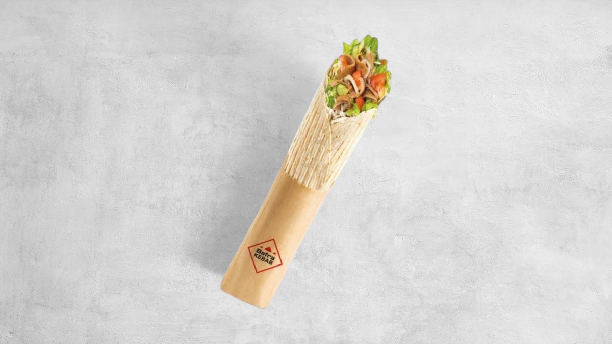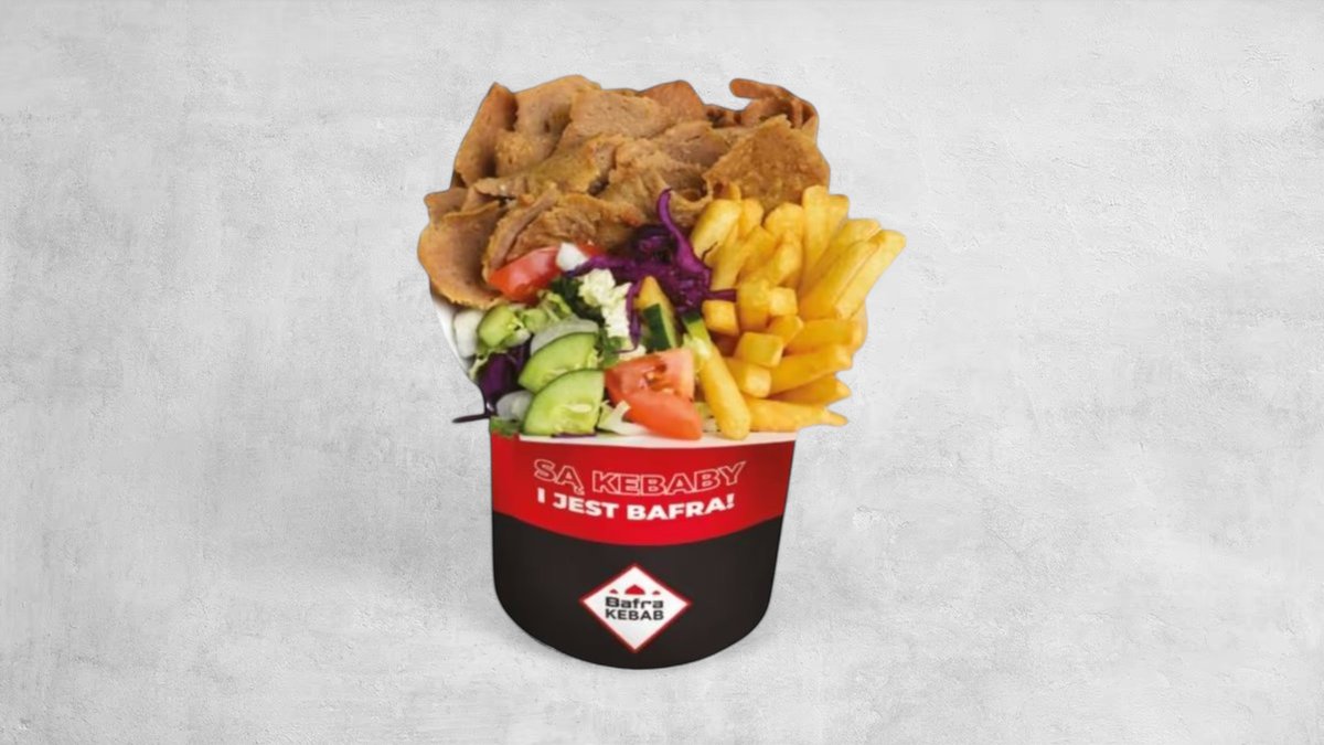 Tortilla lub lawasz, sałata lodowa, pomidor, ogórek, cebula czerwona. Mięso (150g) i sos do wyboru, frytki, napój 0,5l. Cena zawiera koszt za opakowanie