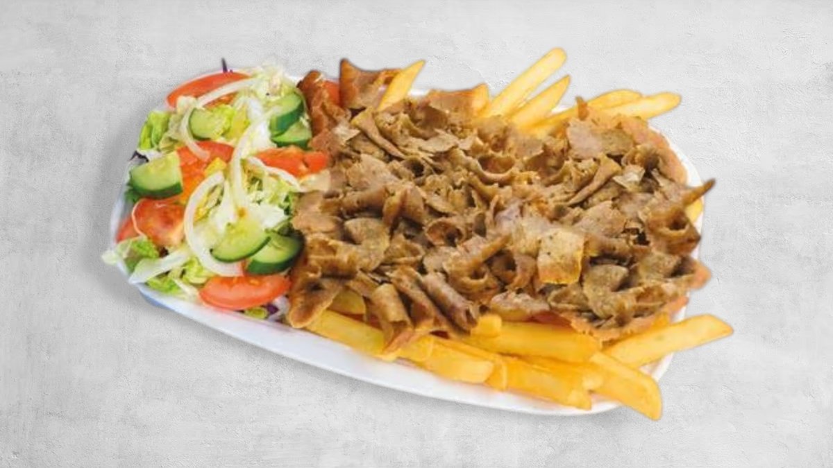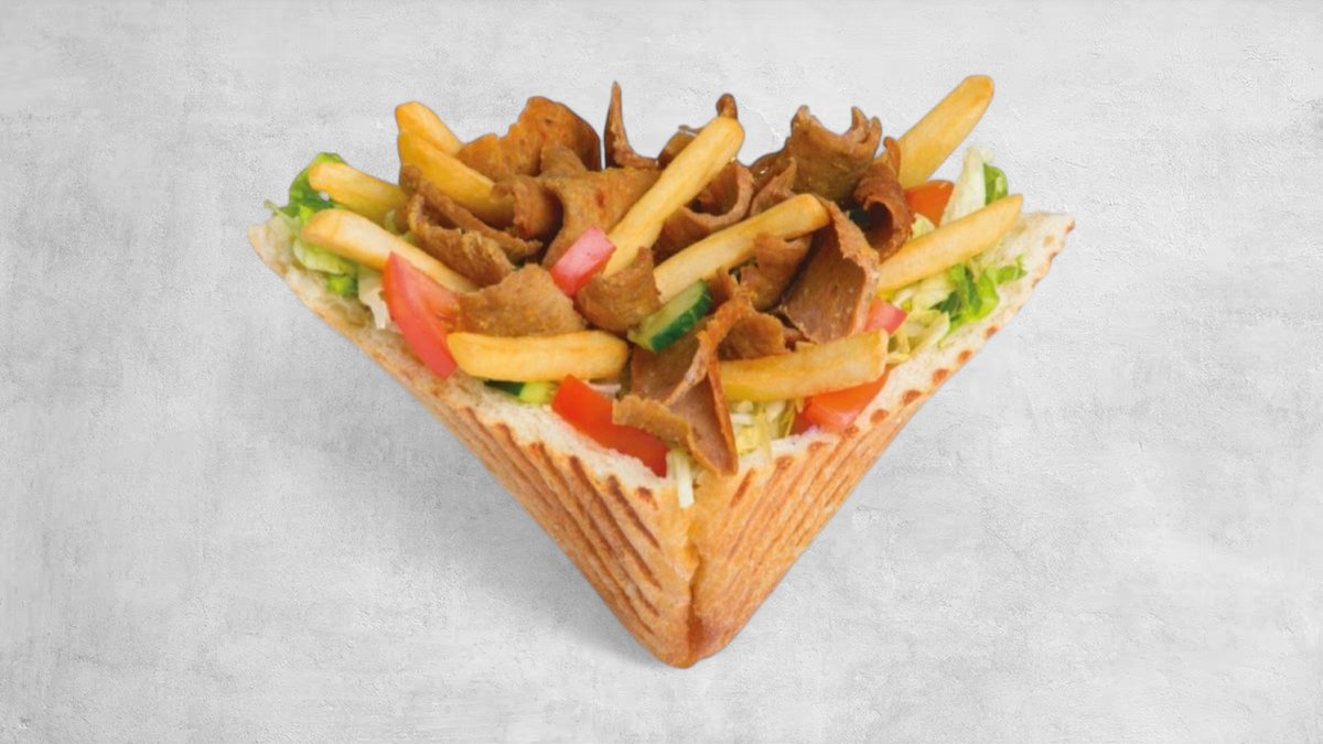 Tortilla lub lawasz, frytki, sałata lodowa, pomidor, ogórek, cebula czerwona. Mięso (210g) i sos do wyboru. Cena zawiera koszt za opakowanie