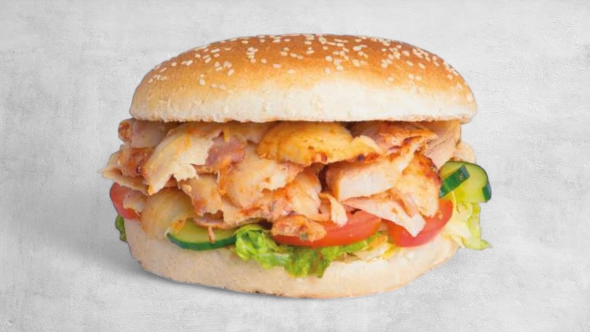 Chleb rustykalny, sałata lodowa, pomidor, ogórek, cebula czerwona. Mięso (180g) i sos do wyboru, frytki, napój 0,5l. Cena zawiera koszt za opakowanie