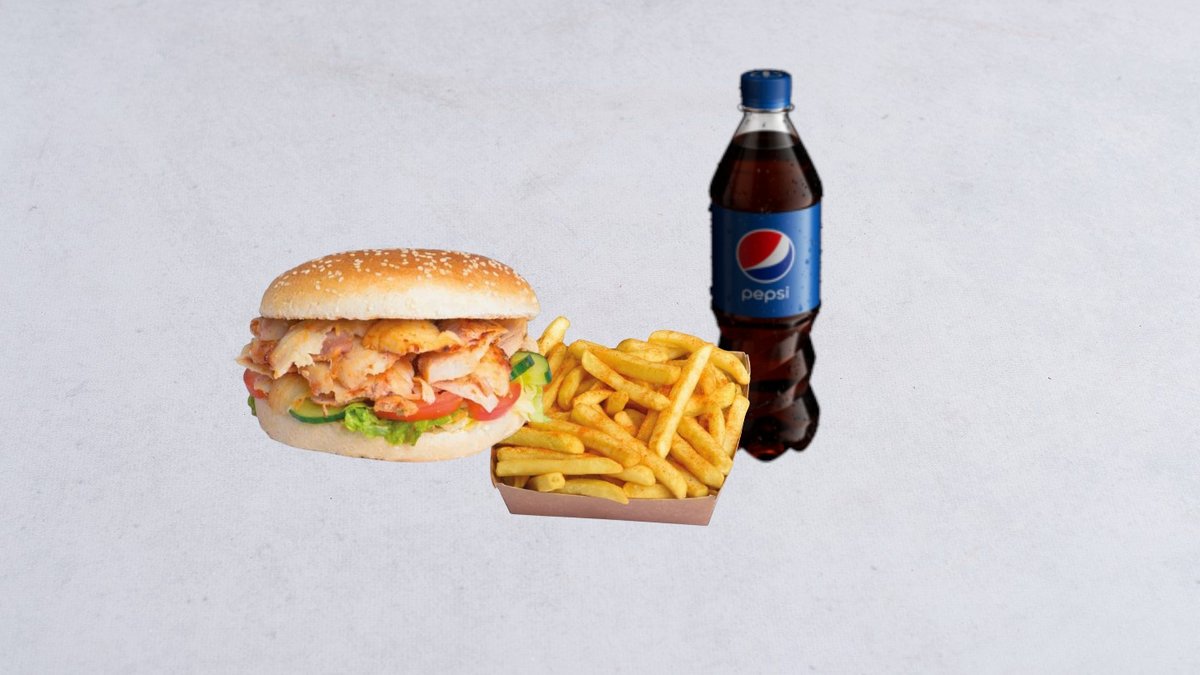 Bułka + duże frytki + napój