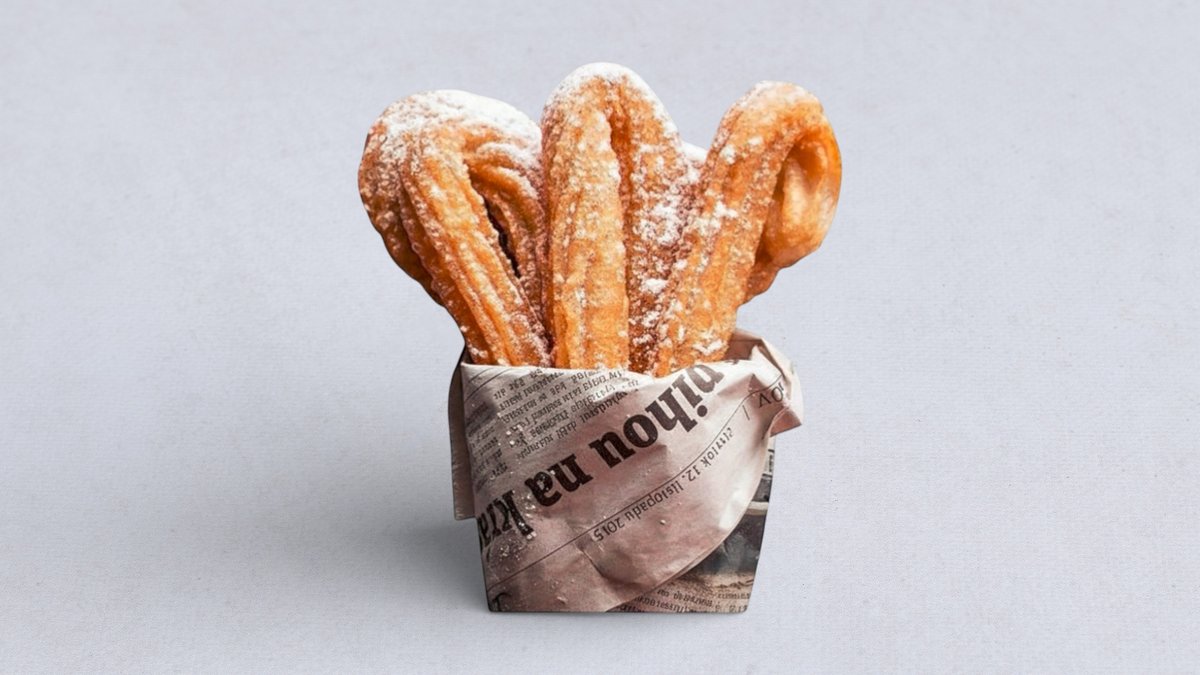 6 szt churros posypanych cukrem pudrem z sosem czekoladowym w zestawie