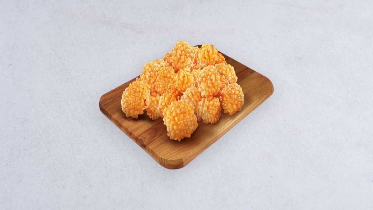 Mięso kurczaka uformowane w kuleczki, frytki