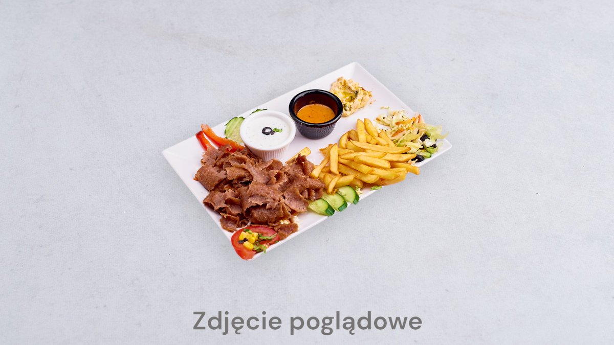 Mięso, warzywa, frytki, sos