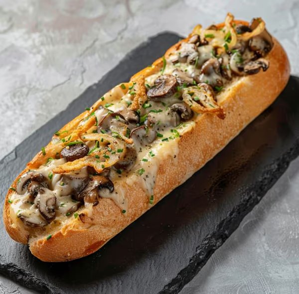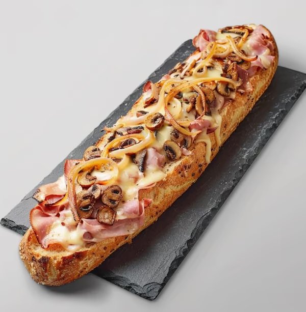 Sos, pieczarki, ser, cebula, boczek, ogórek kiszony
