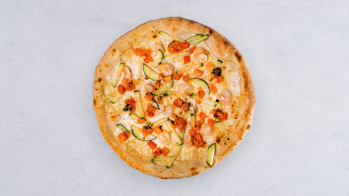 Pizza bianca z krewetkami