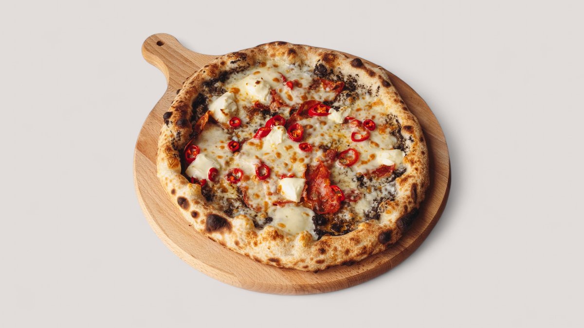 Sos pomidorowy, Mozzarella Fior di Latte, pikantna kiełbasa 'Nduja, szalotka, serek Mascarpone, miód