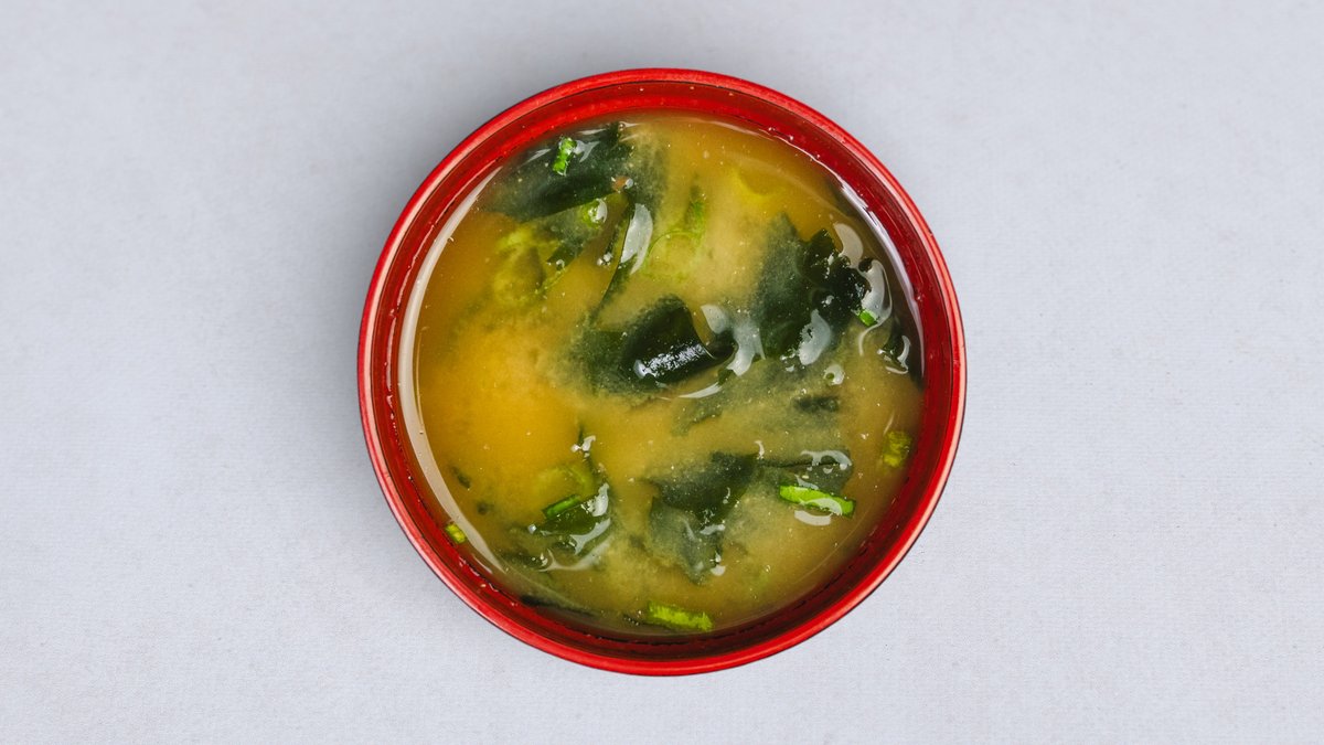 Wołowina, cebula, makaron shirataki, czerwony imbir, negi, japoński rosół, ryż