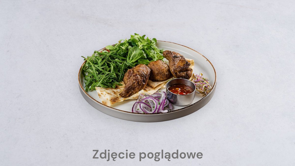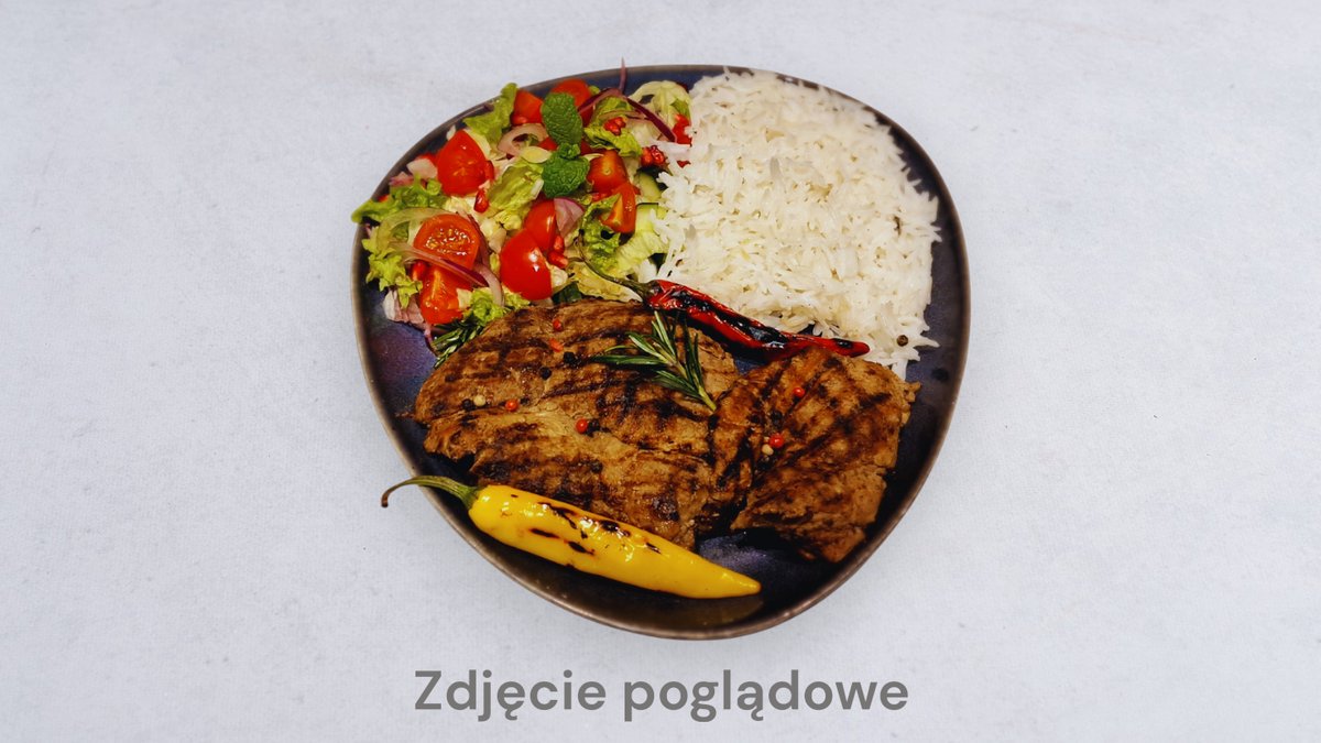 Do wyboru jeden rodzaj mięsa: filet lub udko lub stek z karkówki. Do dania została doliczona opłata w wysokości 0.31 zł za opakowanie