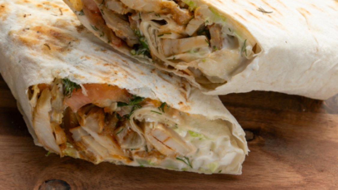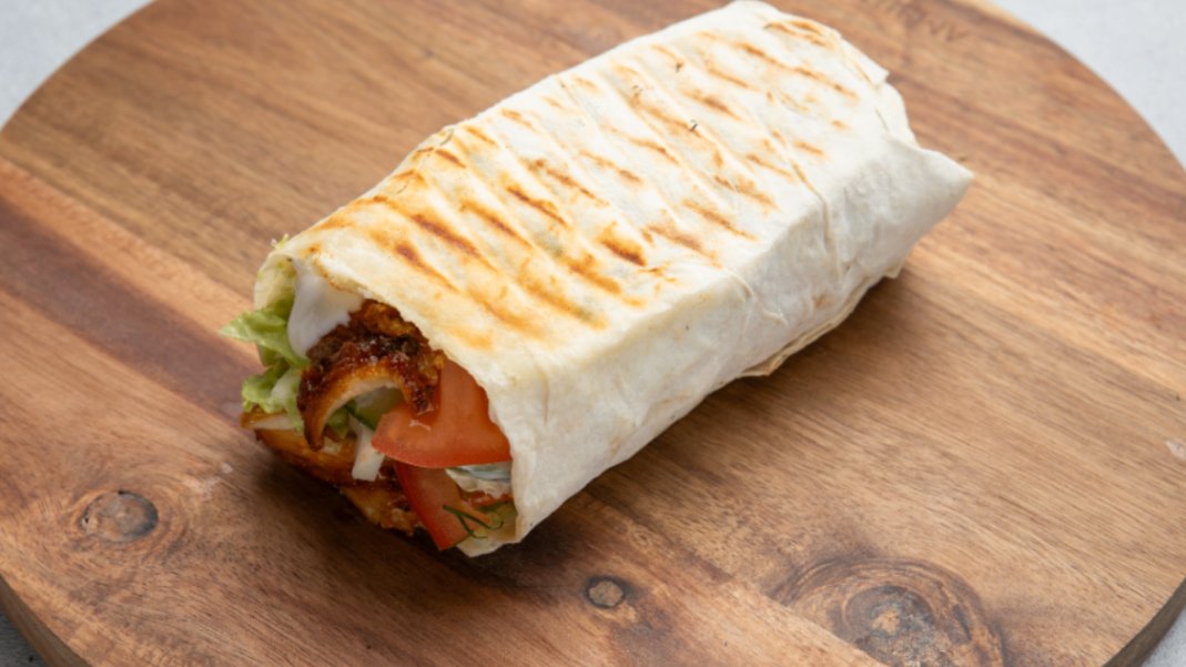 sos czosnkowy, mięso z kurczaka filet , kapusta pekińska, świeży pomidor, świeży ogórek, świeży koperek.
