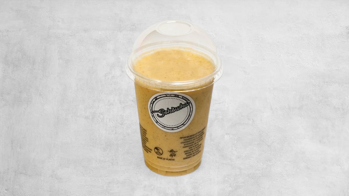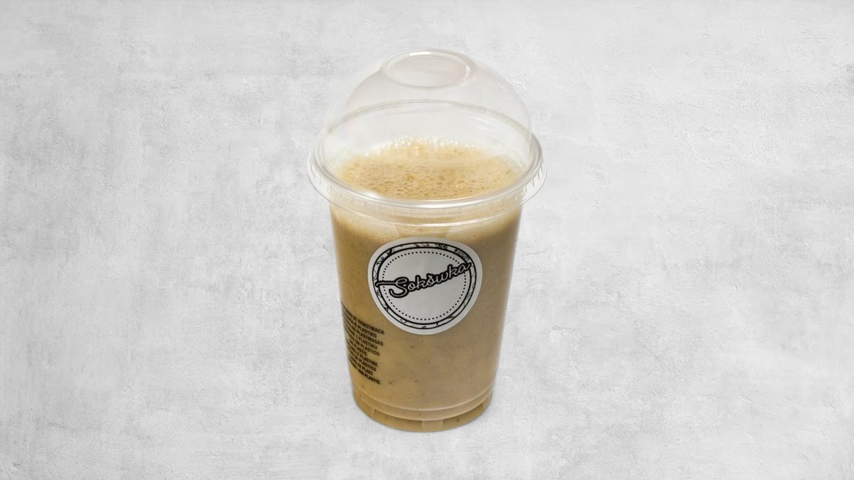 Banan, pomarańcza, kurkuma, imbir, miód, cytryna, białko roślinne, mleko sojowe