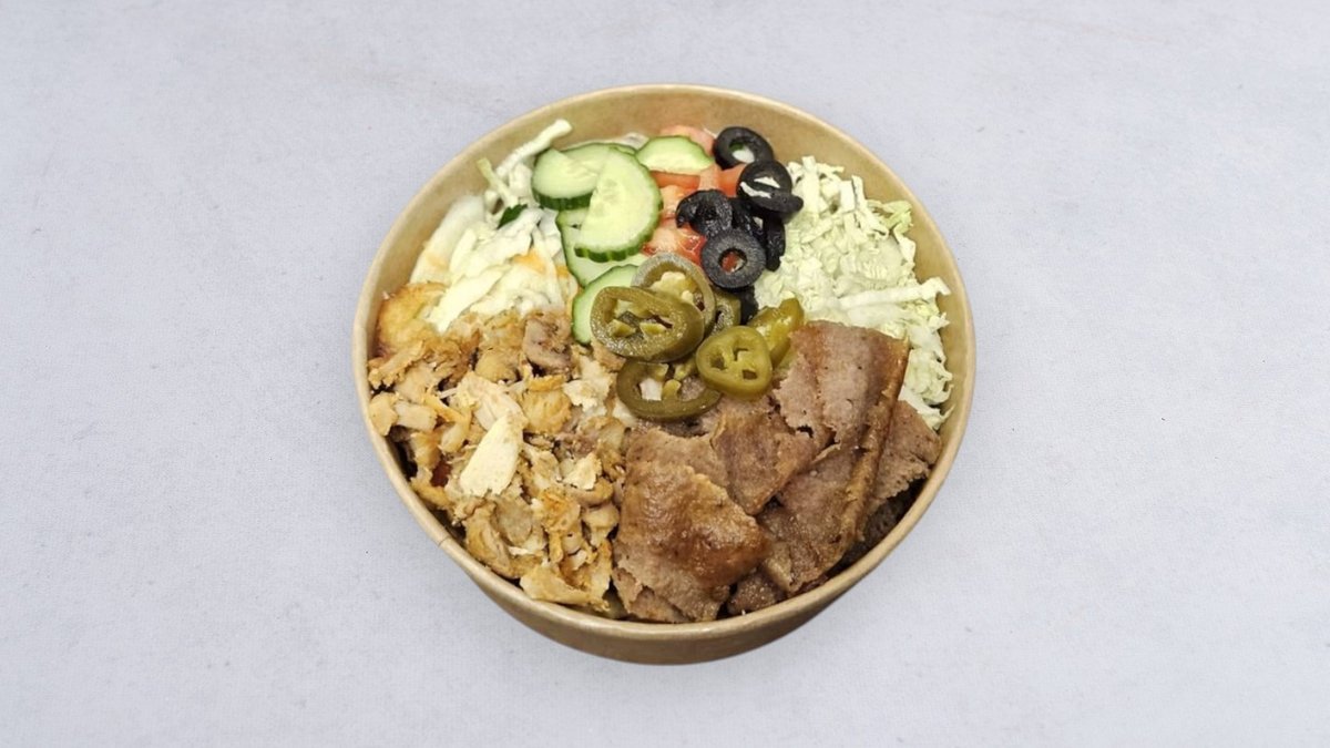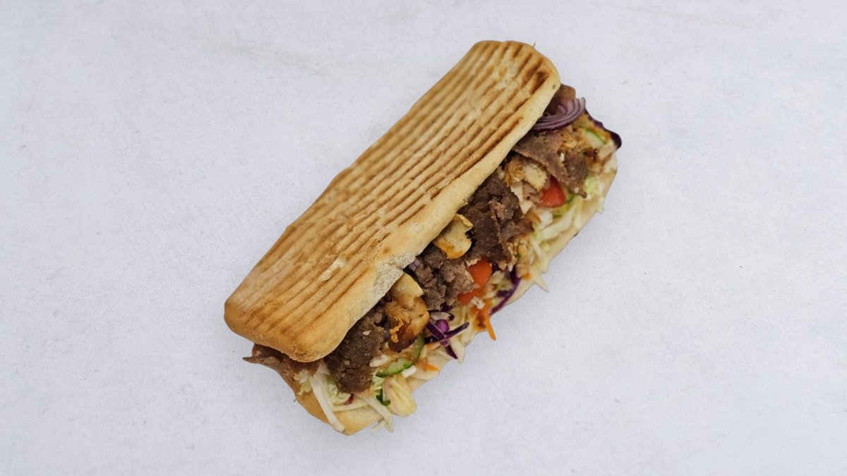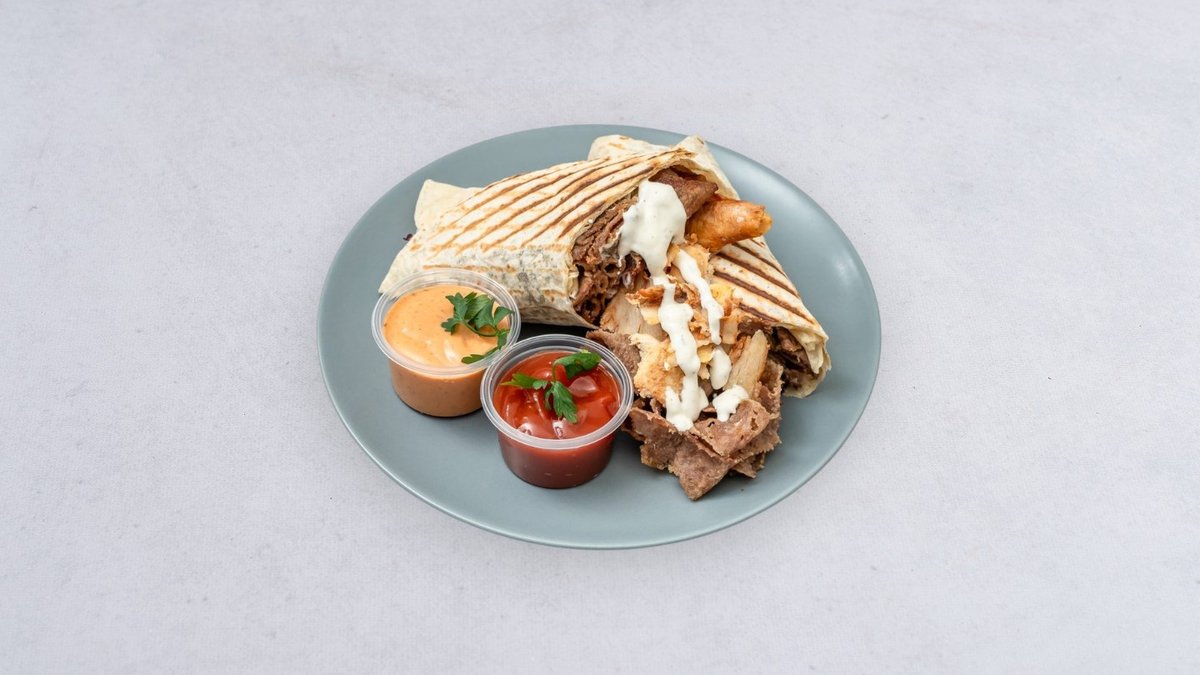 Pita, mięso, surówka, sos
