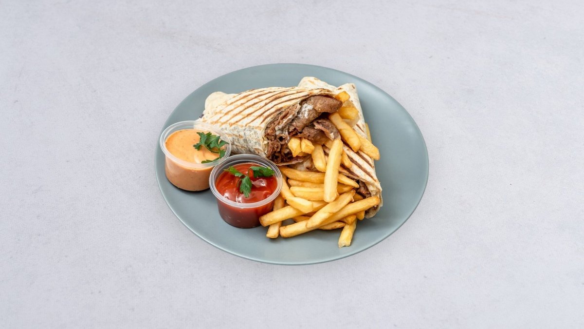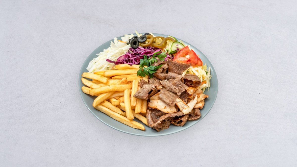 Mięso, surówka, frytki, sos
