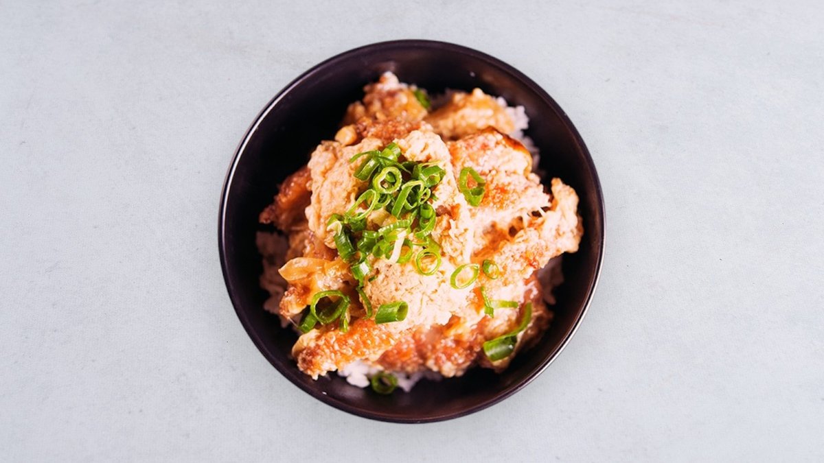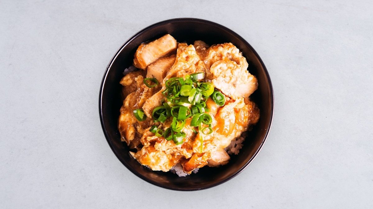 Kurczak, cebula, jajko, negi, dashi, ryż