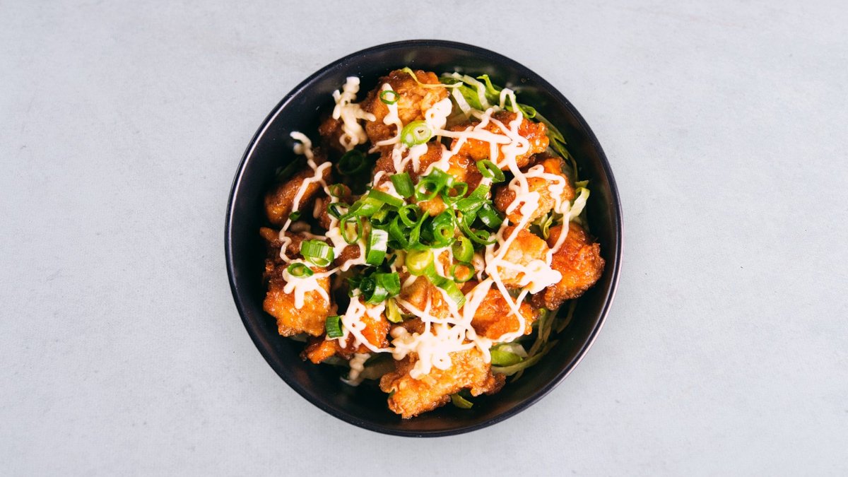 Kurczak, sos teriyaki, kapusta, majonez, negi, ryż
