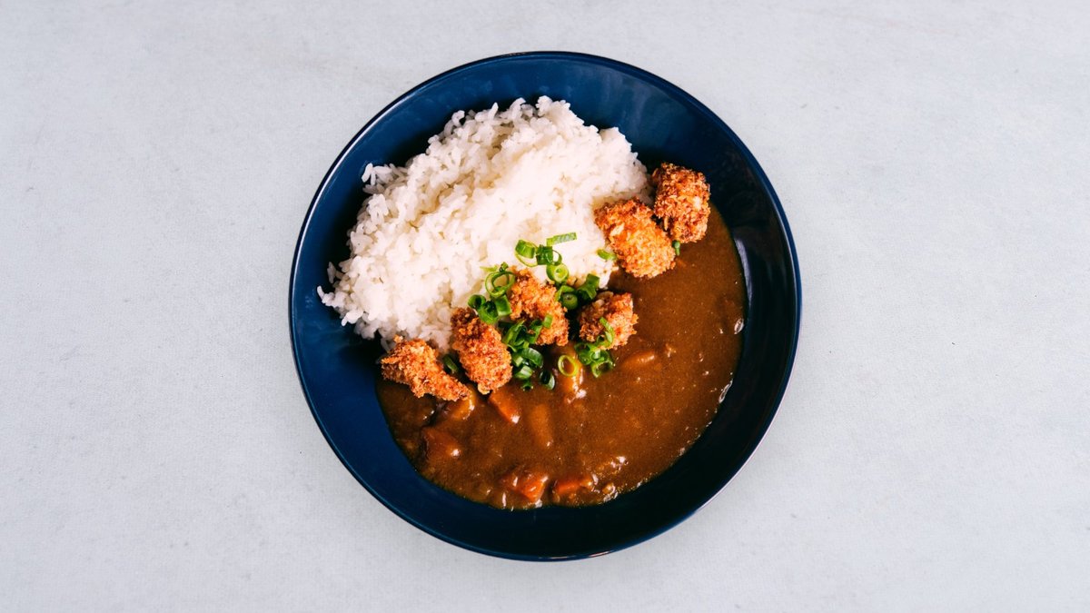 Kurczak, panko, warzywa, negi, sos curry, ryż