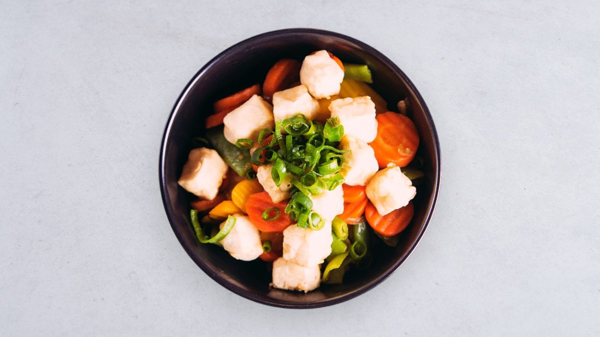 Tofu, mąka, marchewka, cebula, seler, negi, ryż