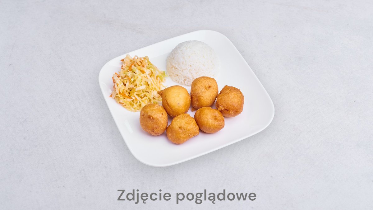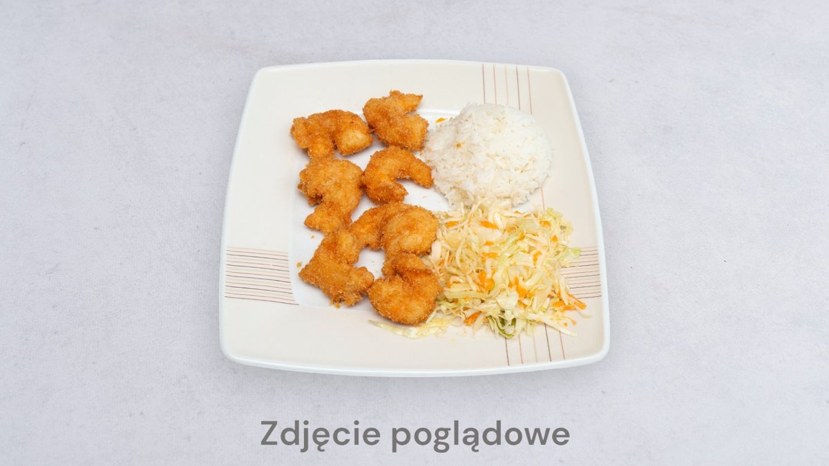 W panierce, z ryżem i surówką