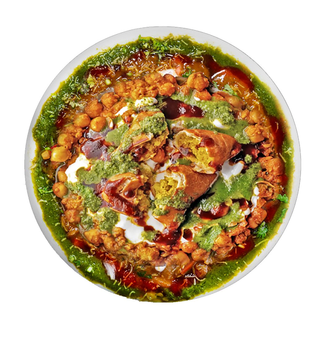 Samosy z aromatyczną ciecierzycą i polewą chaat