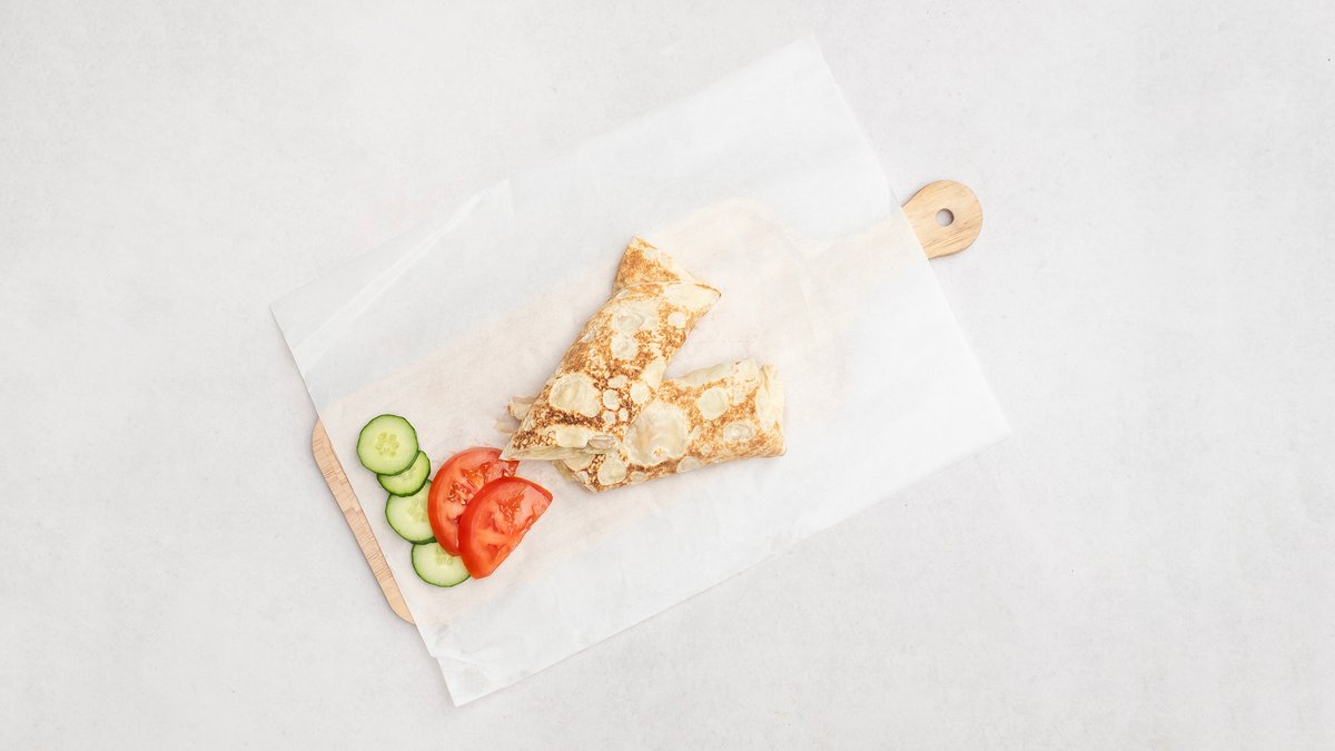 Chleb saj z zaatarem, pomidorem i ogórkiem